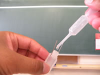 ※ろうそくを立てておき、その炎にむかって一気にボトルキャップを指で押し、中の気体を押し出すと、ポンッ!と爆発音(爆鳴)がでます。 4.おわりに 衝撃はまったくと言っていいほど無く,その割には大きな音が出て子どもたちにとっては(大人でも)迫力があります。小学生で電気分解まで取り扱うのは少し早いですが,水よう液の性質で水素の発生を観察するので,水素の性質を垣間見るにはいい機会ですので,発展学習で取り入れると良いと思います。また,中学での学習につなげることができるので,興味付けにも良いでしょう。 ただし,やはり水素ですのでこれくらいの気体の量で良いです。あまり容器を大きくしてしますと,爆発も大きくなってしまいますのでご注意ください。 最後に,この実験のアイデアをいただいた枚方市の教育研究会小学校理科班の皆さん,ありがとうございました。 5.参考文献 RikaTan(リカタン)2010年6月号 星の環会 |