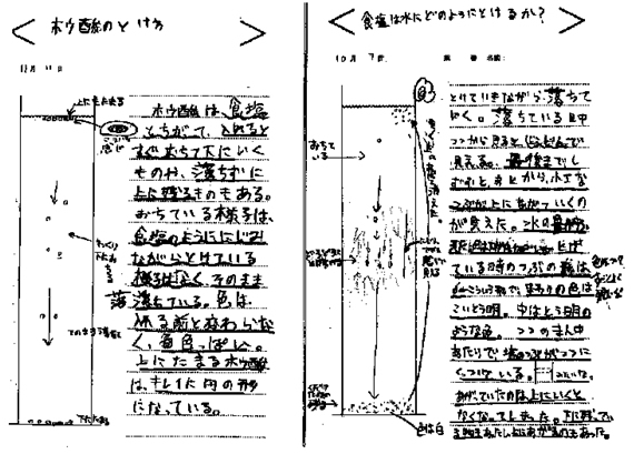 科学的な知識は最終的には「ことば」で表現され,思考するときも「ことば」で行われる。実際に観察したことや実験結果から思ったことや考えたことをいろいろな表現方法でまず表出することが科学的思考につながると考えられる。