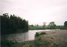流水実験が終わったところで,そこでわかったことと本物の川とを比較するため,現地学習を行う。先ず,川全体を眺めさせスケッチを行う。