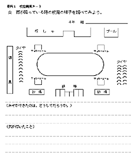 | 1. | 流れの速いところはどこですか。じっさいに調べてみて,図の記号でかっこの中に答えなさい。 |