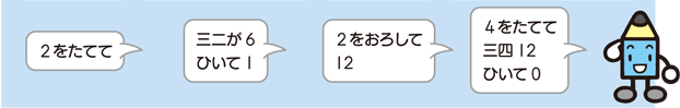 その際は,次のように声に出して計算させると,アルゴリズムがより身につきやすくなります。