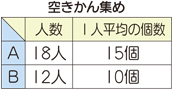 この場合には,単純に(15+10)÷2として平均を求めることはできません。Aグループ18人,Bグループ12人のように度数が異なるので,