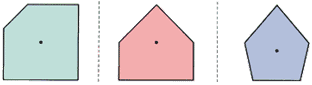 どちらの自慢ごまにも,整った形(正五角形)にしたいという願いがこめられている。実際に回して比べてみると,確かに最初の五角形のこまよりもよく回った。しかし,円や正方形のこまに比べると,まだ不十分である。子どもたちは,満足できず,新たに次のような問いを持った。「どのようにすれば,整った形(正五角形)に変えられるか」その問いを深めさせるために,下記のような教具を提示した。