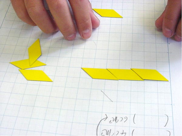 2倍,3倍の図形を基本図形の2つ分,3つ分と表すことが可能で,視覚的にも量的にも依存関係や比例関係がとらえやすい。 |