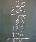| 3 | 既習事項から25×24の筆算の仕方を考える。 | 【筆算の仕方の自由思考】