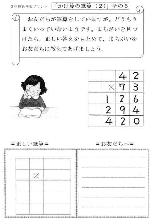 | 5 | 筆算の間違いを見つけてその原因を考える。 | 【間違いの原因を手紙にかく】
