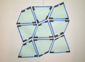 | T | : | タイルの形が問題だね。こんな形のタイルなんです。何て言う形かというと。