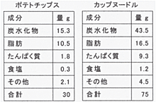 | ・ | ポテトチップスとカップヌードルでどちらが,脂肪が多いと思いますか。 |