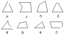 提示した図形は上記の8つ 先ほどの先生当てクイズの要領で,今度は図形を言い当てる為の質問を考えさせた。児童から出てきた反応は以下の通りである。