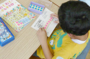 6.授業を終えて これまでの指導では,増加では右側から増える場面を取り上げるだけで終わっていた。本時は,いろいろな方向から増える場面を取り上げたことにより,加数と被加数の関係について話し合いによって明確にすることができた。これらのことから,1年生での加法や減法の意味をとらえさせる指導では,1場面での数図ブロックの操作の仕方に合わせて立式させるだけでなく,いろいろな場面を取り上げて考えさせることが,正しく式に表す上で有効であることが分かった。 7.おわりに 本実践では,和が10以下の加法について述べてきたが,和が10より大きい数になる加法及びその逆の減法,3つの数の計算,乗法・除法においても,「式の意味を正しくとらえる児童」を育成することが大切である。特に,「式に表す」「式で処理する」と同様に「式をよむ」活動を重視する必要があると感じる。今後は,問題場面と解決方法と式を関連付けられるような工夫を,実践を通して探っていきたい。 |