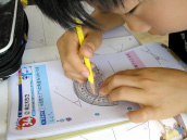 体を使って,色々な大きさの 角を見当づけてつくり,量感を養う。
