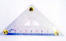 一組の三角定規を用意させ,直角二等辺三角形の定規の角に,「あ」「い」「う」と印をつけさせ,「