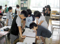 そこで,友だちのプリントを見合う場を設けた。複雑な式をつくった子どもの席では,多くの子どもが足を止め,プリントをのぞき込み理解を深めていた。