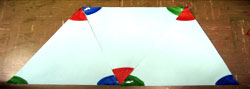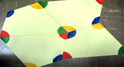4.指導の工夫 (1)単元を貫く課題の設定 単元の入り口では,長方形や直角三角形,三角形,四角形の敷き詰め模様を見せて話し合う中で,きちんと敷き詰められるのは図形の角に関係があることを見通すことができるようにし,単元を貫く課題をつかませるようにする。