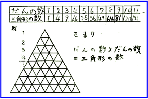 段の数 と 三角形の数 の変わり方を調べましょう。 |