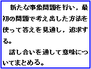 はじめにつくった自分で見いだした考えを,新しい事象にあてはめ,正しさやよさという観点から共同解決活動し,自分なりの考えを新しい数理へと一般化していく段階 |