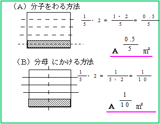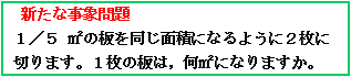 1/5uの板を同じ面積になるように2枚に切ります。1枚の板は何uになりますか。 |