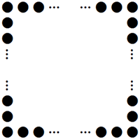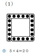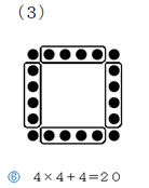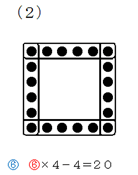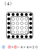 ここからの活動は,隣り通しでのペアでの活動を行った。 (1)〜(4)の考え方をもとに,1辺の数が7個,10個,100個,それぞれの場合をもとに一般化するためには,表された式を相互に比べながら「同じところ,違うところ」に着目させることが大切である。 最後に,右図のような文字Xを使って「1辺にX個並ぶ場合」の一般化を図った。すると,(1)〜(4)の全ての場合についてXを使った文字式で表現することができた。