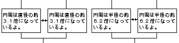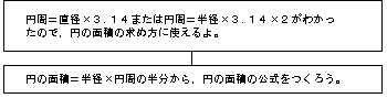 円の面積の求め方と円周を求める公式をつなぐ。 | |