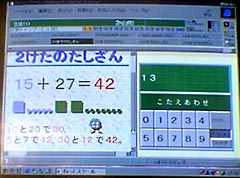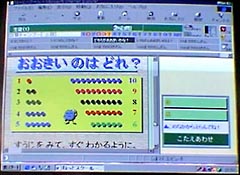 1年生の子どもたちは,さんすうの学習が大好きである。具体物を用いたり,あるいはプリントでの練習など,様々な学習方法を組み合わせることによって,より興味・関心を継続させることができる。 コンピュータの活用もその一つとして考え,必要な場面を見つけて利用させている。今回の「1ねんの おさらい」も,コンピュータと他の方法を組み合わせて,同時進行で学習を進める方法をとった。1年生の子どもたちも,コンピュータを使っての学習は大好きで,時間の経過するのも忘れて,おさらいをしていた。 1年生の子どもたちにとっては,コンピュータはもう,いつでも身近にあるごく普通の楽しい学習のツールのようである。