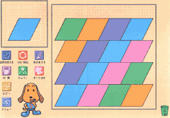 ○ | 本単元ではコンピュータを効果的に活用して(文渓堂「さんすうワールド」を使用)学習を進めていくことにした。本時では,自分でやってみたい形を画面に作成し,それを敷き詰める活動をコンピュータで意欲的に行うことによって,図形のいろいろな性質を発見し,その不思議さや美しさを感じさせていきたいと考えた。また,コンピュータを活用することで,次のような利点が考えられる。