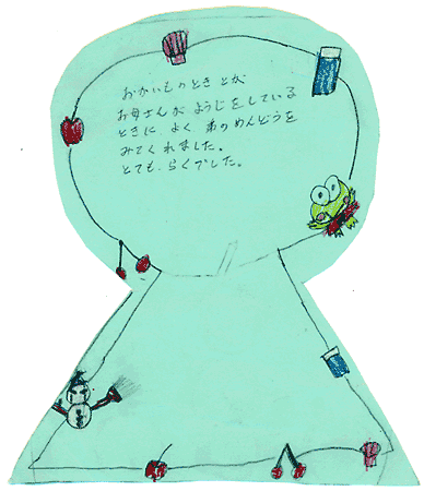 | ・ | 家族の手のなかで好きだなと思う手の場面を絵に表わす。 【お母さん,お父さんの絵が多い。40種類】