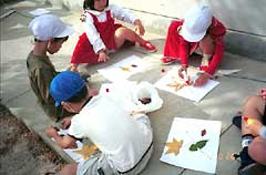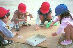 活動のグループは,1年生3名・幼稚園児2名の5名のグループを組んだ。5回の活動を通して,メンバーの変更はしなかった。その方が,かかわりが深まると考えたからである。1学期の2回の活動は,やっと顔と名前を覚えた程度で,活動の深まりはあまり見られなかった。2学期に入り,「あきとあそぼう」という単元で,3回のかかわりを持った。3回目のかかわりについては,授業公開という形を取ったので,その資料を記載した。