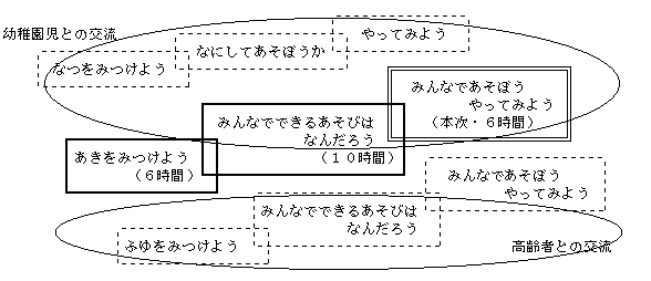 | ○ | 地域の幼稚園児とかかわりを持ち,ともに楽しく遊ぶなかから,相手のことを考えて行動できるようにする。 (他者とのつながり・地域とのつながり) |