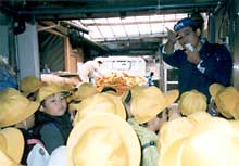 探検に行った子どもたちは,実際にみそやしょうゆの製造過程を目にしたことにより,みそ作りへの興味・関心を持たせることができた。 |