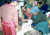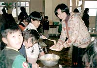 | 今回のみそ作りでは「みそ名人」を講師に迎え,子どもの「思い」や「願い」の実現をめざした。みそ作りでは,みそ名人の話を真剣に聞きながら積極的に取り組む子どもの姿が見られた。 |