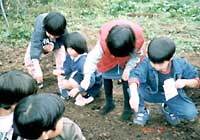 「家の近くで見つけた秘密をみんなに教えてあげよう」と学習課題をたて,家の近くや学校の行き帰りで見つけたおもしろい・不思議な・みんなに教えてあげたい「場所・もの・人」などを探すことから「みそ作り」の活動は始まった。 |