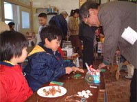 | ・ | まつぼっくりでヨーヨーを作ろう。 (各自作業に入る。) |