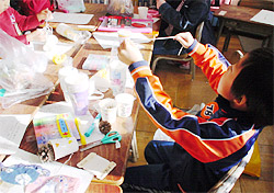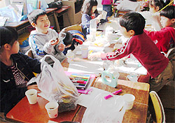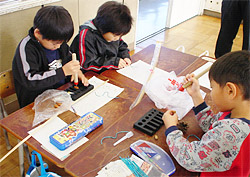 まずは,一人で遊べるものを考えて作るように告げる。 |