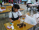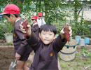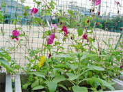 本学級の児童は,草花や自然の多い校園にめぐまれ,入学当初から校庭の草花に興味を持っている。5月に一人一鉢でアサガオの種をまき,学習園でサツマイモの植付けを経験している。一生懸命に草抜きや水やりなどの世話をして,植物の生長を目で見ることは,児童の励みや喜びになっている。そして,世話の大切さや大変さに気付くことができている。7月には,ヒャクニチソウの苗も植え,花と緑いっぱいの学校の一員として栽培活動に取り組んでいる。夏休み前から,アサガオはきれいな花が咲き,サツマイモは地面が見えないほど,葉で覆われるようになっている。地中にある芋が大きく育ってくれることを願って,夏休みも世話を続けてきている。