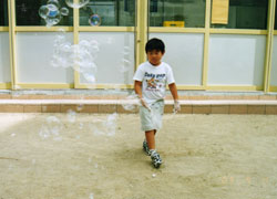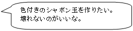 第1次の「しゃぼんだまであそぼう」で,遊ぶ時間を充分確保したので,遊ぶ中で,シャボン液・道具・大きさなどに関するアイデアが膨らみ,遊んだ後の感想カードには,どの子のカードにも課題が書かれていました。その後,課題追求型の学習展開をしたことで,子どもたちの学習意欲をより持続することができました。