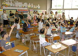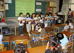 | 家の人に聞いてもらえることから,ふだん以上に児童たちははりきって発表に取り組んだ。保護者の方も,「児童が学校に親しみをもっている様子をみて安心した。」「保育園時代は,人前に出て話すのを嫌がったのに成長した。」との感想を寄せてくれた。 |