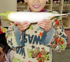 「たくあんって,大根からできるの?」「丸かじりはできるかなあ。」 |