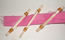 <割り箸を使って> 布を蛇腹に折って割り箸で挟み込む。 |