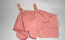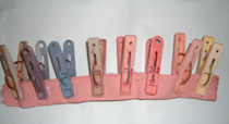 <洗濯ばさみを使って> 布を蛇腹に折って洗濯ばさみで挟み込むだけなので,とても簡単です。 |