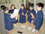 | 子どもたちは,実際の公民館の場で,それぞれのサークル活動を進めていきました。実際の場で,読み聞かせや体操をすることにより,自分たちの活動の達成感や成就感を味わうことができました。 |