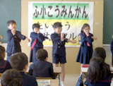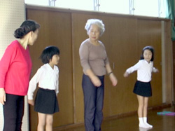 公民館の探検の中で,様々な部屋があることや,小さい子どもからおじいちゃんやおばあちゃんまで,様々な人が利用していることに気付きました。その中で,2つのサークル活動に出合い,読み聞かせの活動や体操の活動に参加することができました。 |