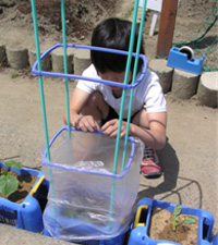みどり色のプチトマトはもうトマトのにおいがしました。 (A子)