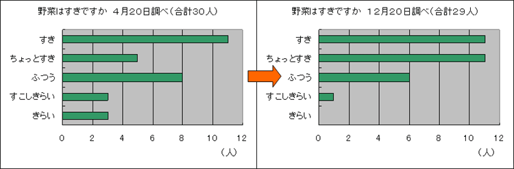 自分たちで育てた野菜のおいしさに気づき,苦手な野菜が食べられるようになる