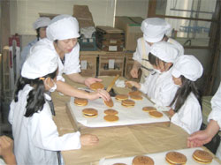 和菓子名人どら焼き作りにチャレンジする子どもたち |