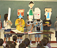 子ども達が得た情報を整理し自分の考えや願いを加えて表現するために,作文や学習ノートに頼る話し合い形式だけではなく,ペープサートを使って発表したり,壁画として絵に描いて表現したりする方法を取り入れた。
