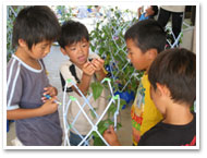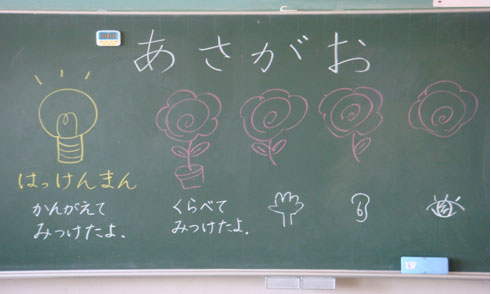 本単元は,一人一鉢で長期にわたる栽培活動を通して,今後の学習の基礎となる,世話の仕方や観察の仕方などを学ぶことに大きな意義のある学習である。初めて自分で種まきをし,世話を通して変化や成長の様子を感じるに適した教材として,アサガオを選んだ。アサガオは,入学後まもない児童でも栽培が用意であり,変化や成長が早いだけでなく捉えやすい。そのため,自分のかかわりを通して満足感や成就感も味わうことができると考えた。