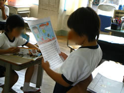 画用紙に絵と文で家族と過ごして楽しかったことを中心に表現し,発表した。児童が発表した後は,質問タイムを入れることにより,聞いている児童も集中して聞いていた。