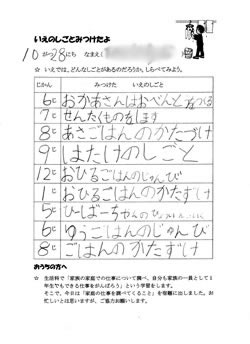 ワークシートに時間を区切って家での仕事を記入させることより,家での仕事の多さに気づかせるようにした。