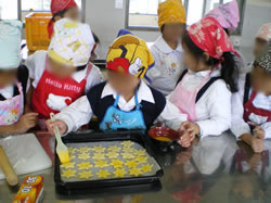 出来上がり,ほかほかのクッキーをかわいい袋に入れるころには,「お母さん,すごく喜ぶかも。」と嬉しそうな満面の笑みの児童たちであった。 |