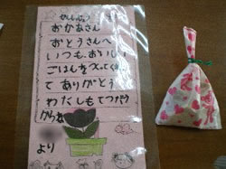 自分の想いをお手伝い,クッキー作り,感謝状によって伝えることで,親子の絆がより深まったように感じる。 |